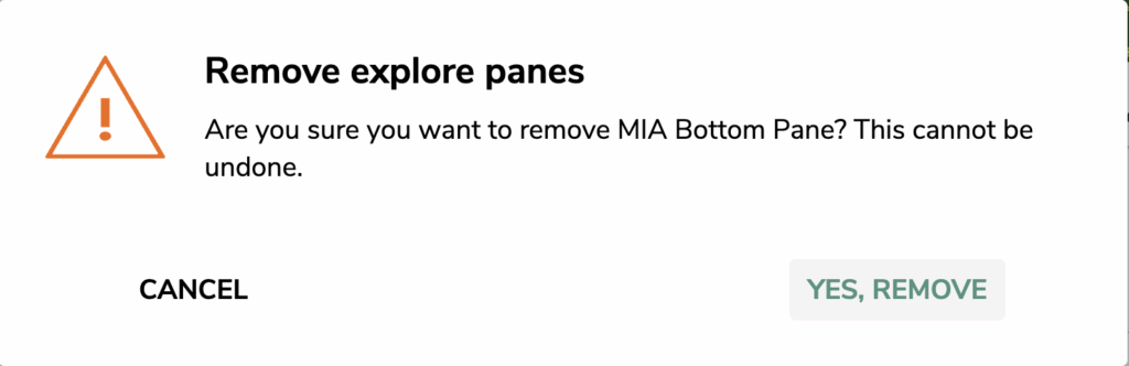 Remove pane. This removes the entire pane from explore builder.