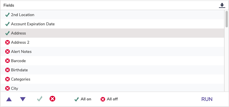 ![]() | The Field Code numbers (shown above, such as 1000 for patron barcode) don’t have any special meaning other than acting as unique identifiers for each of the fields that can be imported or exported. |