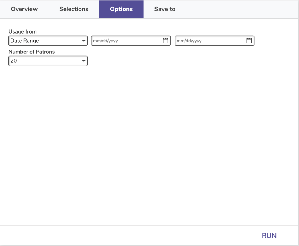 Use: Run this report to get patron totals for planning or budgeting purposes.