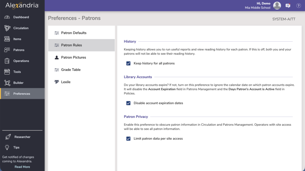 Patron Privacy Preference