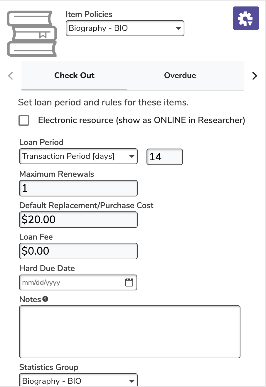 Whenever the rules differ for an item group, you need to create a new item policy and assign it to the affected items. Follow the steps below to manage the item policies for your library.