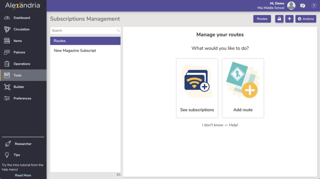 To access it directly, add /subscriptions to the end of your Alexandria URL.